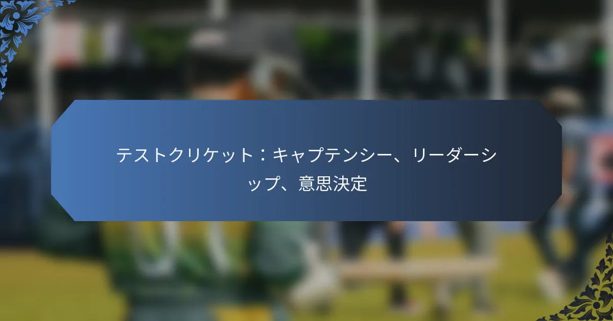 テストクリケットにおける効果的なキャプテンシーは、強力なリーダーシップと戦略的な意思決定に依存しており、チームを鼓舞し団結させるために不可欠です。キャプテンは、ゲームの複雑さを乗り越えるために戦術的な洞察力と感情的知性を融合させる必要があり、彼らのリーダーシップスタイル(権威的または民主的)は、チームのダイナミクスやパフォーマンスに大きな影響を与えることがあります。 テストクリケットにおける効果的なキャプテンシーの定義とは? テストクリケットにおける効果的なキャプテンシーは、強力なリーダーシップ、戦略的な意思決定、そしてチームを鼓舞し団結させる能力によって特徴づけられます。成功するキャプテンは、ゲームの複雑さを乗り越え、勝利の環境を育むために、戦術的な洞察力と感情的知性を兼ね備えている必要があります。 成功するテストクリケットキャプテンの重要な資質 効果的なコミュニケーション: 戦略を伝え、選手を動機づける能力が重要です。 戦術的な洞察力: ゲームを理解し、プレイ中に情報に基づいた意思決定を行うことでチームのパフォーマンスが向上します。 感情的知性: チームのダイナミクスを認識し管理することで、対立を解決し信頼を築くのに役立ちます。 適応力: 試合の状況に応じて戦略やアプローチを柔軟に変更することが不可欠です。 チームへのビジョン: 明確な方向性と目標が選手を最高のパフォーマンスに導きます。 フィールドでのリーダーシップに必要なスキル テストクリケットのキャプテンは、効果的にリードするためにいくつかのスキルを習得する必要があります。プレッシャーの中での意思決定は重要であり、キャプテンは試合の結果を左右する重要な瞬間に直面することがよくあります。また、対立解決にも熟練している必要があり、チーム内の意見の不一致に迅速かつ建設的に対処することが求められます。 チームメンバー間の信頼を築くことも別の重要なスキルです。支援的な環境を育むキャプテンは、選手が自分を表現し、計算されたリスクを取ることを奨励します。この信頼は、チームの士気とパフォーマンスを大いに向上させることができます。 チームの結束を促進するための戦略 結束したチームを育成するために、キャプテンはオープンなコミュニケーションと定期的なフィードバックを優先すべきです。戦略や個々の役割について話し合うためのチームミーティングを開催することで、全員の努力を共通の目標に向けて整えることができます。練習セッション中に協力を奨励することも、選手間の関係を強化します。 さらに、個々の貢献を認識し、チームの成功を祝うことで帰属意識を育むことができます。キャプテンは、クリケット以外のチームビルディング活動を実施して、選手間の友情と相互尊重を高めることができます。 キャプテンシーがチームパフォーマンスに与える影響 キャプテンシーがチームパフォーマンスに与える影響は深遠です。キャプテンのリーダーシップスタイルは、選手の自信、動機、全体的なパフォーマンスに影響を与えることがあります。たとえば、模範を示し、ポジティブな態度を維持するキャプテンは、特に厳しい試合の際にチームの士気を高めることができます。 さらに、効果的な意思決定はより良い試合結果につながることがあります。相手を分析し、それに応じて戦略を適応させるキャプテンは、しばしば改善された結果を得ることができます。この戦略的な先見の明は、接戦の試合で勝つか負けるかの違いになることがあります。 キャプテンシーの役割の歴史的進化 歴史的に見て、テストクリケットのキャプテンの役割は大きく進化してきました。初期のキャプテンは主に戦術的な決定に焦点を当てていましたが、現代のキャプテンは多面的なリーダーであることが期待されています。彼らは、選手の福祉やメディアとの関係を含むフィールド内の戦略とフィールド外の責任をバランスよくこなさなければなりません。 ドン・ブラッドマンやリッキー・ポンティングのような異なる時代の著名なキャプテンは、リーダーシップスタイルやチーム管理の基準を設定しました。彼らのアプローチは、現代のキャプテンがクリケットの複雑さをどのように乗り越えるかに影響を与え、リーダーシップにおける適応力と感情的知性の重要性を強調しています。 テストクリケットのキャプテン間でリーダーシップスタイルはどのように異なるか? テストクリケットのキャプテン間のリーダーシップスタイルは、チームのダイナミクスやパフォーマンスに大きな影響を与えることがあります。キャプテンは通常、権威的または民主的なアプローチを採用し、これが意思決定を形作り、チームの士気に影響を与えます。 権威的リーダーシップと民主的リーダーシップのスタイル 権威的リーダーシップは、キャプテンが独自に決定を下し、チームメンバーに従うことを期待するスタイ