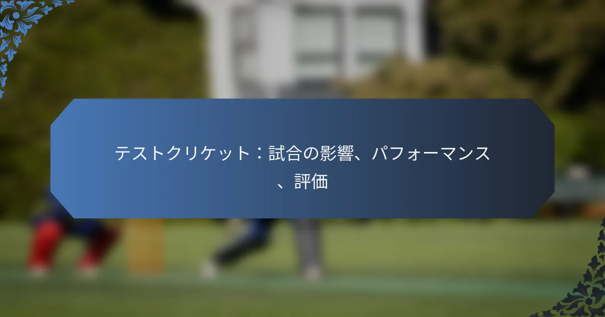 テストクリケットは、チームランキングを形成し、個々の選手のキャリアに影響を与える重要な役割を果たしており、試合の結果は評判やキャリアの軌道を変える可能性があります。選手のパフォーマンスは、統計的な指標と定性的な評価の組み合わせを通じて評価され、この長いフォーマットにおける効果的なプレーの洞察を提供します。さらに、チームはパフォーマンス指標、適応能力、戦略的実行に基づいて評価され、これらは試合での成功を決定するために重要です。 テストクリケットの試合がランキングや選手のキャリアに与える影響は何ですか? テストクリケットの試合は、チームランキングと個々の選手のキャリアの両方に大きな影響を与えます。これらの試合の結果はランキングの変動をもたらし、選手の評判に影響を与え、重要な瞬間でのパフォーマンスに基づいてキャリアの軌道を変えることがあります。 歴史的な試合がランキングに与える影響 歴史的な試合は、クリケットの歴史における重要な瞬間として機能し、チームや選手のランキングに影響を与えます。例えば、テストシリーズでの歴史的な勝利は、チームをICCランキングのトップに押し上げることができる一方で、敗北は劇的なランクの低下を引き起こす可能性があります。これらの試合は、現在の順位に影響を与えるだけでなく、クリケットの歴史の物語を形成します。 これらの歴史的な試合で優れたパフォーマンスを発揮した選手は、個々のランキングが大きく向上することがよくあります。重要な試合での成果は記憶され、称賛され、選手のレガシーや将来の機会に寄与します。 テストマッチの結果が選手のキャリアに与える影響 テストマッチの結果は、選手のキャリアに持続的な影響を与え、今後の試合やシリーズへの選出に影響を与えることがあります。強力なパフォーマンスは自信を高め、より一貫した選出につながる一方で、悪い結果は厳しい目を引き起こし、チームからの除外の可能性をもたらすことがあります。 例えば、強力な相手とのシリーズで優れた成績を収めた選手は、今後数年間チームに残ることができるかもしれませんが、期待外れのパフォーマンスが続くと、フォームや機会の低下につながることがあります。テストクリケットのプレッシャーは、選手の真の潜在能力を引き出し、キャリアの道を形成します。 クリケットの歴史を変えた重要なテストマッチ いくつかのテストマッチは、クリケットの歴史の流れに深い影響を与えました。1983年のワールドカップ決勝のように、インドが西インド諸島を破った試合は、インドクリケットの認識を変えただけでなく、スポーツの世界的な人気にも影響を与えました。 もう一つの例は、2005年のアッシュズシリーズで、テストクリケットへの関心を再燃させ、イングランドとオーストラリアの間の激しいライバル関係を示しました。これらの試合は、ゲームの進化や文化的意義についての議論でしばしば言及されます。 最近の試合と現在の順位への影響 最近のテストマッチは、ICCランキング内のチームの順位に即座に影響を与えました。例えば、最近のトップランクのチームに対するシリーズ勝利は、低ランクのチームを大きく引き上げることができる一方で、敗北は以前強かったチームの勢いを妨げる可能性があります。 これらの結果は、ファンやアナリストによって密接に監視されており、将来の対戦やシリーズに影響を与える可能性があります。テストクリケットのランキングの動的な性質は、すべての試合が重要であり、全体的な競争環境に寄与することを意味します。 チームダイナミクスを形成するテストクリケットの役割 テストクリケットは、チームダイナミクスを形成する上で重要な役割を果たし、選手間の協力とレジリエンスを育むことが求められます。ゲームの長いフォーマットは、チームが戦略を開発し、さまざまな条件に適応することを要求し、チームの結束を強化することができます。 さらに、テストマッチから得られる経験は、ゲームの短いフォーマットでのパフォーマンス向上に繋がることがよくあります。テストクリケットで優れた成績を収めるチームは、強固な基盤を築く傾向があり、ODIやT20でもより良い結果をもたらします。 テストクリケットにおける選手のパフォーマンスはどのように評価されますか? テストクリケットにおける選手のパフォーマンスは、統計的な指標と定性的な評価の組み合わせを通じて評価されます。主要な指標には、打率やボウリング平均、ストライクレート、選手ランキングが含まれ、ゲームの長いフォーマットにおける選手の効果を示します。 テストクリケット選手の主要なパフォーマンス指標 テストクリケットでは、選手を評価するためにいくつかの主要なパフォーマンス指標が重要です。これらの指標には: 打率:選手がアウトになった回数で割った総得点で、一貫性を示します。 ボウリング平均:取ら