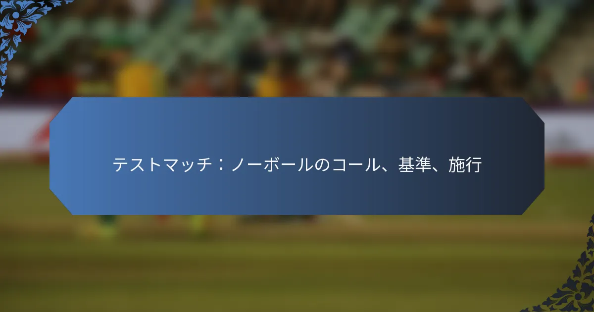 テストマッチにおけるノーボールの判定は、公平なプレーを促進する特定の基準に基づいており、足の位置やボウラーのアクションの合法性が含まれます。フィールド上の審判はこれらのルールを施行する責任があり、技術の進歩により判定の正確性が向上しています。ノーボール規則のニュアンスを理解することは重要であり、ODIやT20のような短いフォーマットとは異なるため、ゲームの戦略や流れに影響を与えます。 テストマッチにおけるノーボール判定の基準は何ですか? テストマッチにおけるノーボールの判定は、公平なプレーとルールの遵守を確保する特定の基準によって決定されます。これらの基準には、足の位置、投球の高さ、ボウラーのアクションの合法性などが含まれます。 足の位置とクリースを越えること 足の位置はノーボールを決定する上で重要です。ボウラーはボールを投げる際に前足がポッピングクリースの後ろにある必要があります。ボウラーがこのラインを越えると、自動的にノーボールが宣告されます。 審判はボウラーの足の位置を厳密に監視しており、わずかな越境でもノーボールにつながる可能性があります。このルールは公平性を維持し、ボウラーが不当なアドバンテージを得るのを防ぐために設計されています。 投球の高さとウエストハイトルール 投球の高さもノーボール判定において重要な役割を果たします。バッツマンが通常のスタンスにいるときに、ウエストの高さを超える投球はノーボールと見なされます。このルールは、バッツマンを危険な投球から守ることを目的としています。 審判は各投球の高さを慎重に評価する必要があります。ボウラーが一貫してウエストの高さを超えるボールを投げる場合、彼らの投球アクションや技術に関して厳しい目が向けられることがあります。 フロントフットノーボール技術とその実施 フロントフットノーボール技術は、ノーボール判定の正確性を高めるために導入されました。この技術はカメラとソフトウェアを使用して、ボウラーの足の位置をリアルタイムで追跡し、審判に即時のフィードバックを提供します。 この技術の実施により、不正確なノーボール判定の数が大幅に減少し、ボウラーが足の位置に対して責任を持つことが確保されています。ただし、試合中に効果的に機能するためには、適切なキャリブレーションとメンテナンスが必要です。 ボウラーのアクションと違法な投球 ボウラーのアクションは、ノーボールと見なされないために特定の規則に従う必要があります。違法な投球には、投げることや、投球中に腕がまっすぐになっていない状態でのボウリングなどが含まれます。これらの行為はノーボールの判定につながり、試合の結果に影響を与える可能性があります。 審判は違法なボウリングアクションを認識するための訓練を受けており、繰り返し違反があった場合、ボウラーに対して懲戒措置が取られることがあります。テストマッチにおける公平な競争のためには、合法的なボウリングアクションを維持することが重要です。 異なるタイプのノーボールに関する特定の規則 異なるタイプのノーボールには特定の規則があります。例えば、フロントフットノーボールはボウラーがクリースを越えた場合に自動的に宣告される一方で、高さに関連するノーボールは投球の軌道に基づいて宣告されます。 これらの規則を理解することで、選手やチームは効果的に戦略を立てることができます。コーチは、試合中のノーボール判定のリスクを最小限に抑えるために、トレーニング中にこれらのルールを遵守する重要性を強調することがよくあります。 テストマッチにおけるノーボール判定はどのように施行されますか? テストマッチにおけるノーボール判定は、ボウラーの投球が確立された基準に従っているかを監視するフィールド上の審判によって施行されます。最近の技術の進歩や選手レビューシステムも、これらの判定がどのように行われ、覆されるかに影響を与え、ゲームの正確性と公平性を高めることを目指しています。 ノーボール判定におけるフィールド上の審判の役割 フィールド上の審判の主な責任は、ボウラーがクリケットのルールに従って合法的な投球を行ったかどうかを評価することです。これには、ボウラーの前足の位置を観察し、それがポッピングクリースを越えないことを確認することが含まれます。審判は集中力を維持し、プレイヤーや観客からのプレッシャーの中で迅速な判断を下さなければなりません。 審判はまた、ボウラーのアクションが危険または不公平であるかどうかを判断するなど、主観的な判定を行う責任も負っています。ノーボールがフリーヒットや追加得点につながる場合、彼らの決定は試合に大きな影響を与える可能性があります。これらの判定の一貫性は、ゲームの整合性を維持するために重要です。 ノーボール検出における技術の使用 技術は、テストマッチ