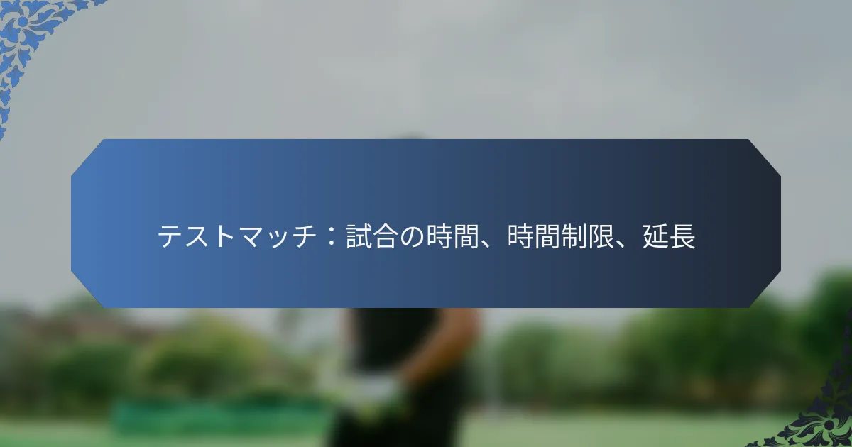 テストマッチは最大で5日間続くように設計されており、各日は約6時間のプレイが行われます。試合の時間は天候やプレイのペースなどの要因によって影響を受ける可能性があり、開始時間や終了時間、休憩に関する具体的な規定があります。さらに、試合の中断に応じて時間が延長されることがあり、これは国際クリケット評議会(ICC)が定めたガイドラインに従って、公平性と試合の誠実性を確保するために行われます。 テストマッチの期間はどのくらいですか? テストマッチは通常、最大で5日間続き、各日は約6時間のプレイで構成されています。全体の期間は、天候条件やプレイのペースなど、さまざまな要因によって影響を受ける可能性があります。 テストマッチの標準的な期間 テストマッチの標準的な期間は5日間に設定されており、各日には通常最大90オーバーが投球されます。この構造により、バットとボールの間で包括的な対戦が可能となり、チームが自らのスキルを披露する十分な機会が提供されます。 試合は現地時間の午前11時に開始され、午後6時頃までプレイが続きますが、これは現地の条件や規制によって若干異なる場合があります。 日々のプレイ時間の内訳 テストマッチの各日は、通常、昼食とティーのための休憩を挟んで2つのプレイセッションで構成されています。通常のスケジュールは以下の通りです: 午前のセッション:午前11時から午後1時 昼食休憩:午後1時から午後1時40分 午後のセッション:午後1時40分から午後3時40分 ティー休憩:午後3時40分から午後4時 最終セッション:午後4時から午後6時 この構造化されたアプローチにより、選手は十分な休息を取りつつ、1日を通して安定したプレイのペースを維持することができます。 天候が試合の期間に与える影響 天候条件はテストマッチの期間に大きな影響を与える可能性があります。雨による遅延や悪天候はプレイ時間の損失につながり、試合の日数が延長されたり、試合スケジュールが調整されたりすることがあります。 悪天候の場合、審判はプレイの中断を呼びかけることがあり、失われた時間を取り戻せない場合は試合が6日目に延長される必要があります。チームやファンは、潜在的な中断を予測するために天気予報に注意を払う必要があります。 テストマッチの期間に関する歴史的な変化 歴史的に、テストマッチは期間や構造において進化してきました。最初は試合が最大で6日間続くことができましたが、視聴者の関与や試合の結果を向上させるために5日間に短縮されました。 年を追うごとに、限られたオーバー形式の導入もテストマッチの長さに対する認識に影響を与え、短い形式が人気を博しています。しかし、5日間の形式はクリケットにおける大切な伝統であり、戦略と持久力を強調しています。 他のクリケット形式との比較 テストマッチは、ワンデイインターナショナル(ODI)やトゥエンティ20(T20)マッチなどの他のクリケット形式とは大きく異なります。ODIは通常約8時間続き、T20マッチは約3時間で終了します。 この対比は、テストマッチに必要な戦略的深さと持久力を強調しており、短い形式の速いペースとは対照的です。ファンや選手は、各形式が提供する独自の課題を評価し、クリケットを多様なスポーツにしています。 テストマッチの時間制限は何ですか? テストマッチは最大で5日間行われ、各日は通常約6時間のプレイで構成されています。この構造には、特定の開始時間と終了時間、休憩に関する規定、そして中断に対する許可が含まれています。 日々の開始時間と終了時間 テストマッチは通常、現地時間の午前11時に開始され、最初のセッションは午後1時頃まで続きます。昼食のための休憩の後、プレイは午後1時40分頃に再開され、午後3時40分頃まで続き、その後午後6時頃まで続く最終セッションがあります。 これらの時間は現地の条件や特定のトーナメントの規制によって若干異なる場合がありますが、一般的な枠組みは一貫しています。チームや観客は、アクションを見逃さないようにこれらの時間を把握しておく必要があります。 時間あたりのオーバーに関する規定 標準的な期待として、チームは時間あたり最低15オーバーを投球する必要があります。このペースは、試合が合理的な速度で進行し、選手やファンにとって興奮と関与を維持することを保証します。 実際には、ボウラーの交代、フィールディングの調整、天候条件などの要因が投球されるオーバーの数に影響を与える可能性があります。審判は投球されたオーバーを監視し、チームがこの要件を一貫して満たさない場合にはペナルティを課すことができます。 プレイ中の予定された休憩 昼食に加えて、テストマッチには通常20分間の短いティー休憩が含まれ、これは第2セッションの後に行われます。これらの休憩は選手が休息し、再集結する機会を提供し、観客がリフレッシュする機会も提供します。 チームはこれらの休憩中に時間を効果的に管